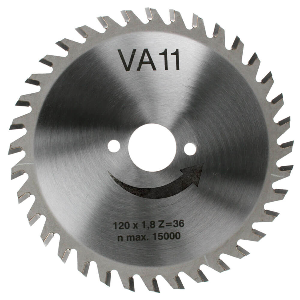 The original Varga VA 11 carbide saw blade is a replacement part compatible with Varga table saw models VA 11, VA 21-7, VA 21-15, and VA 31-15. With a diameter of 4.72" (120 mm), a bore of 0.79" (20 mm), and a cutting width of 0.067" (1.8 mm), this blade delivers precise, clean, and accurate cuts on plastics, aluminum, brass, and other non-ferrous metals.