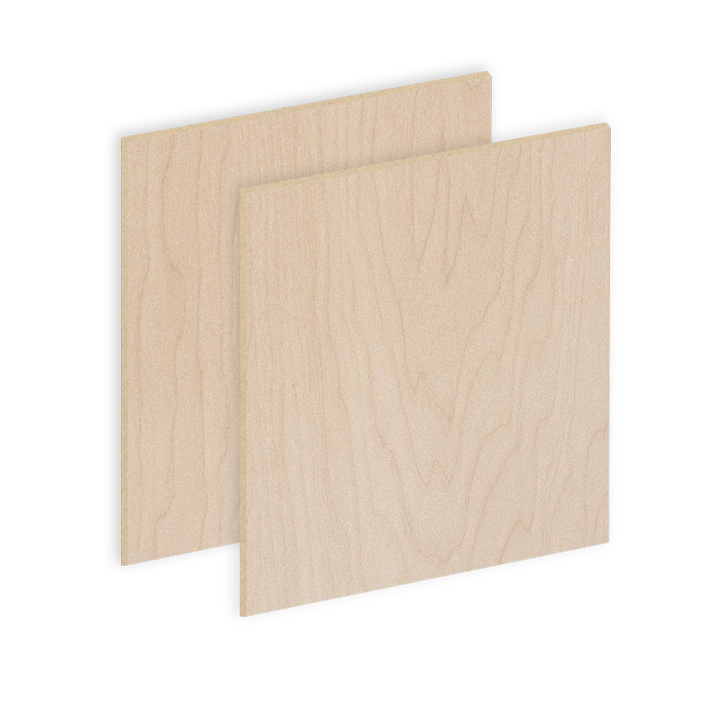 TruFlat plywood is pressed onto a defect free MDF core for easy cutting. The laser plywood sheets are available in a convenient 12” x 19” size in a 3.6mm thickness, compatible with most small format lasers, including select Glowforge models.