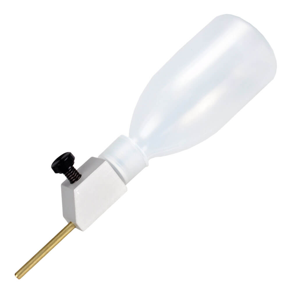 The flow rate can be easily adjusted with the black set screw, allowing you to optimize lubrication for different materials and cutting tasks. By reducing friction, this system promotes cleaner cuts and helps extend the lifespan of your saw blades. The Vargol Drip Dispenser is an essential accessory for maintaining efficiency and precision in any workshop.